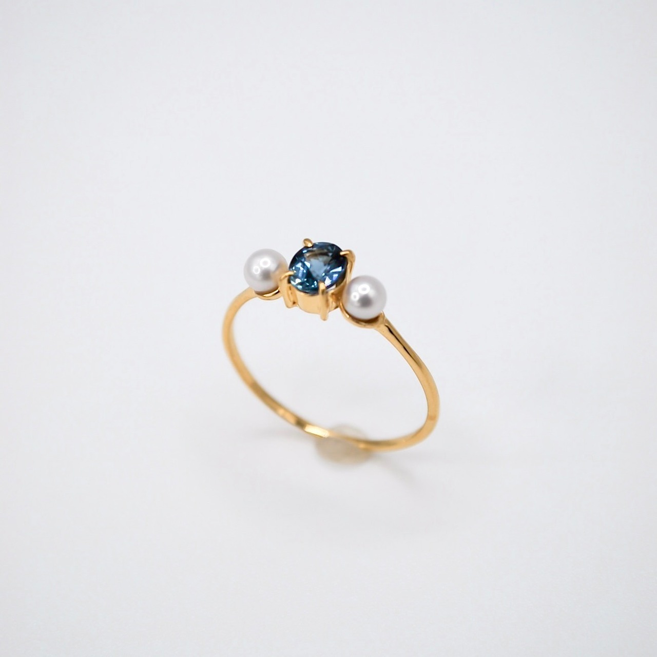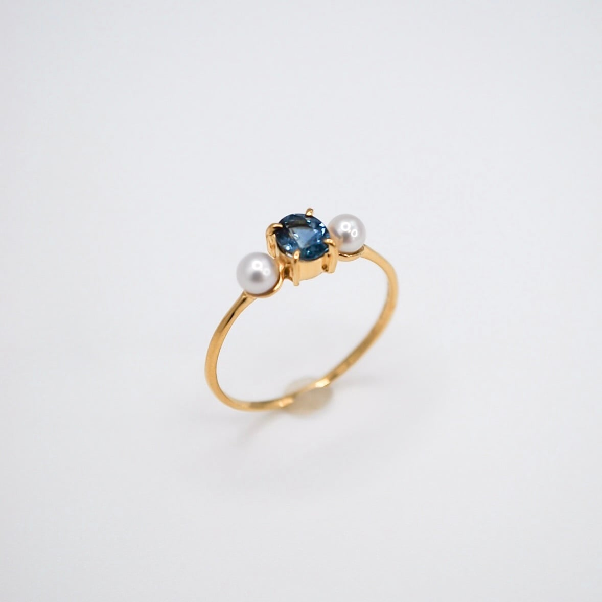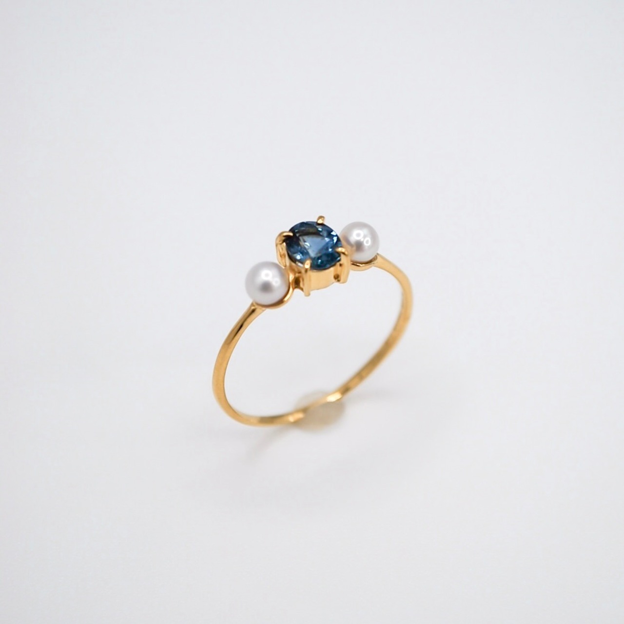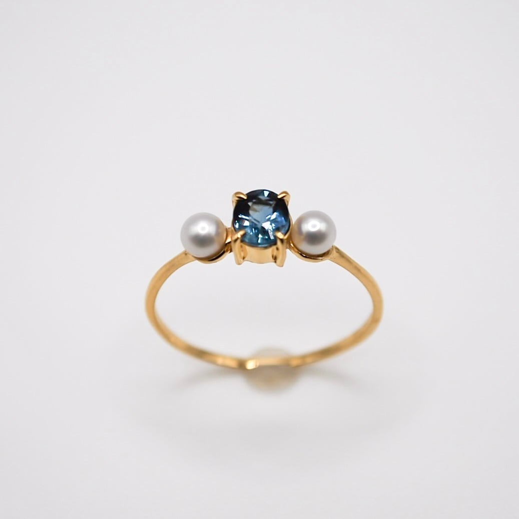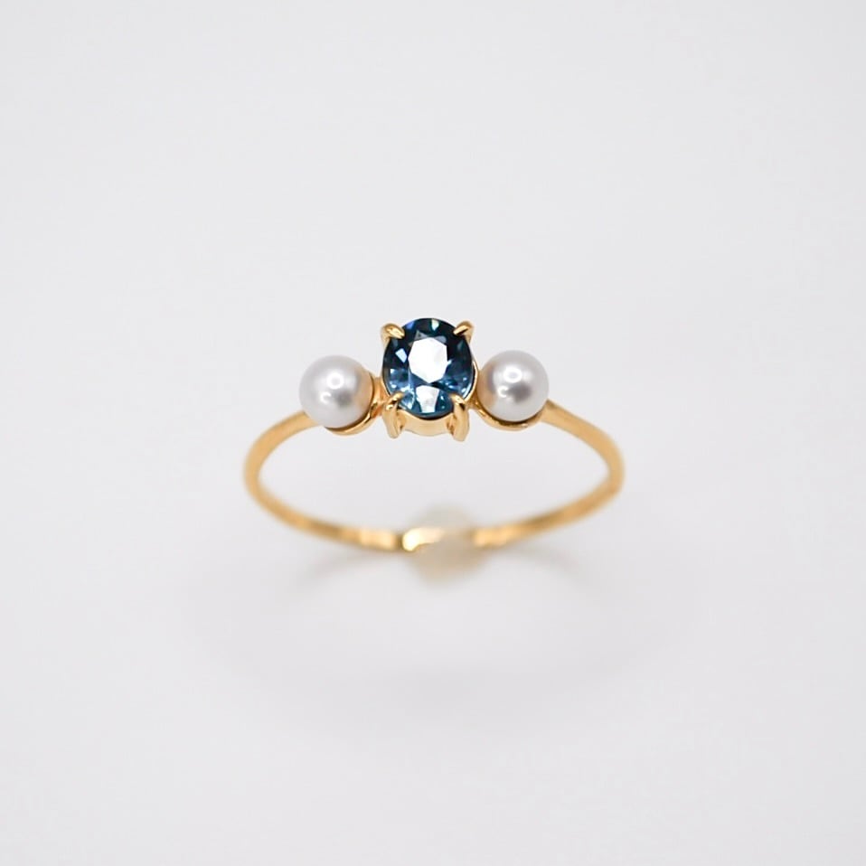 ブルーサファイアと淡水パールのリング。