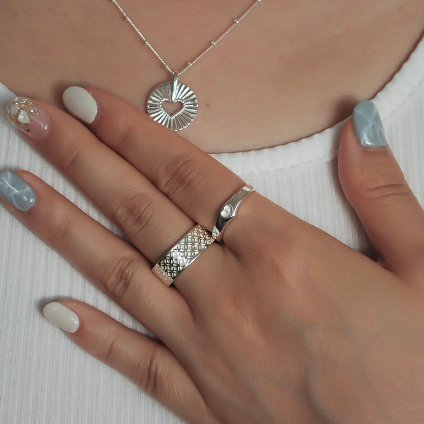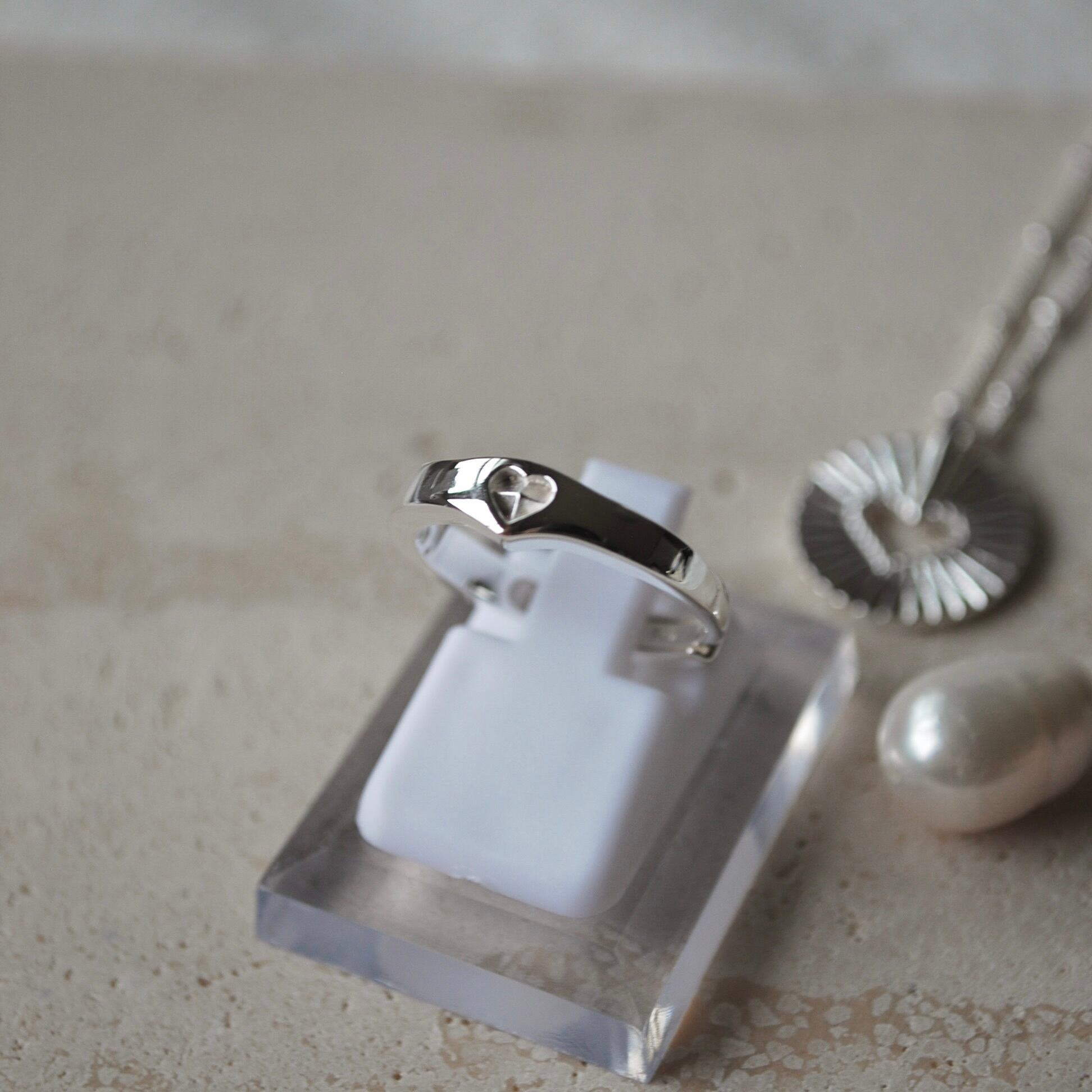 トレンドのハートを彫ったリング。